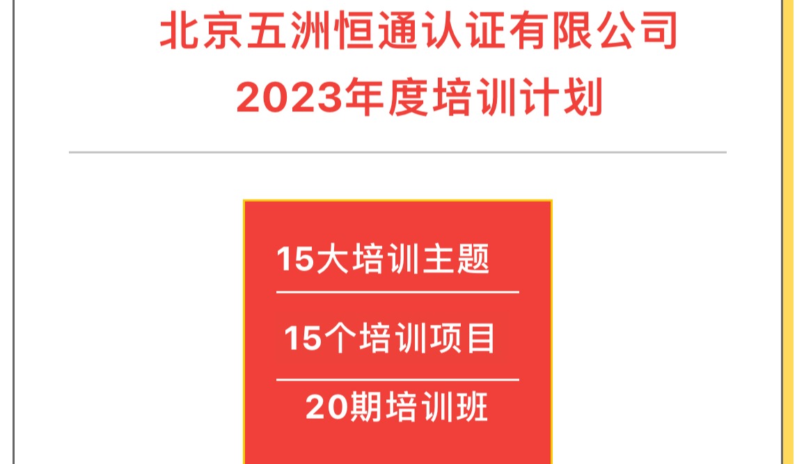北京五洲恒通認證有限公司 2023年度培訓計劃