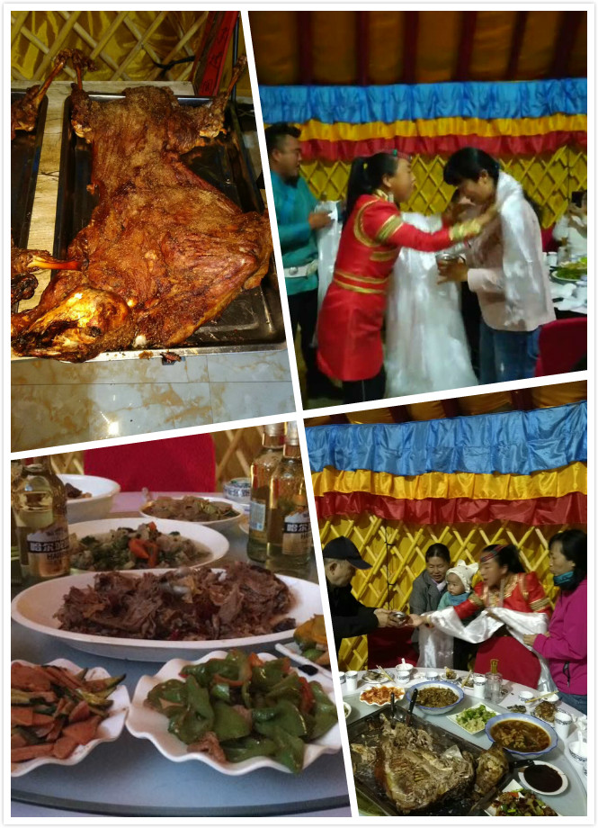 周六的晚餐我們品嘗到了當(dāng)?shù)靥厣救颍诿牢都央戎?,大家推杯換盞、交流情感;別具一格的獻(xiàn)哈達(dá)儀式加深了我們對于民族文化的了解。