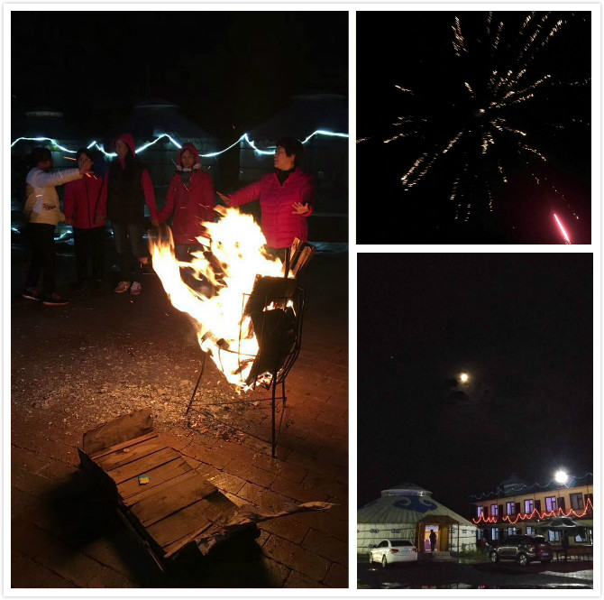 草原天氣復(fù)雜多變,剛剛還是滂沱大雨夾雜著冰雹,不一會兒又皓月當(dāng)空。滿懷期待著篝火晚會開始了:煙花綻放出心中的喜悅,圍著篝火跳出滿懷的激情,緊張而又熱烈。