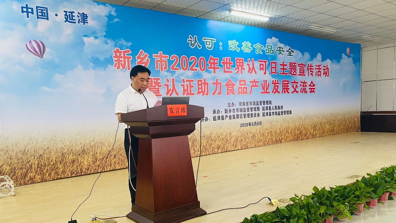 活動(dòng)開始,延津縣人民政府縣長(zhǎng)致歡迎詞,河南省市場(chǎng)監(jiān)督管理局認(rèn)證監(jiān)管處處長(zhǎng)、新鄉(xiāng)市市場(chǎng)監(jiān)督管理局局長(zhǎng)相繼致辭。河南省市監(jiān)局認(rèn)證監(jiān)管處處長(zhǎng)毛選強(qiáng)調(diào),在習(xí)近平新時(shí)代中國(guó)特色社會(huì)主義思想指導(dǎo)下,河南省市監(jiān)局將充分發(fā)揮認(rèn)證認(rèn)可在發(fā)展綠色農(nóng)業(yè)、有機(jī)農(nóng)業(yè)、改善食品安全上的優(yōu)勢(shì),大力鼓勵(lì)和引導(dǎo)有條件的企業(yè)或組織積極申請(qǐng)相關(guān)領(lǐng)域認(rèn)證,以質(zhì)量認(rèn)證促進(jìn)鄉(xiāng)村振興,推動(dòng)脫貧攻堅(jiān),在服務(wù)地方經(jīng)濟(jì)社會(huì)高質(zhì)量發(fā)展中釋放新的活力。