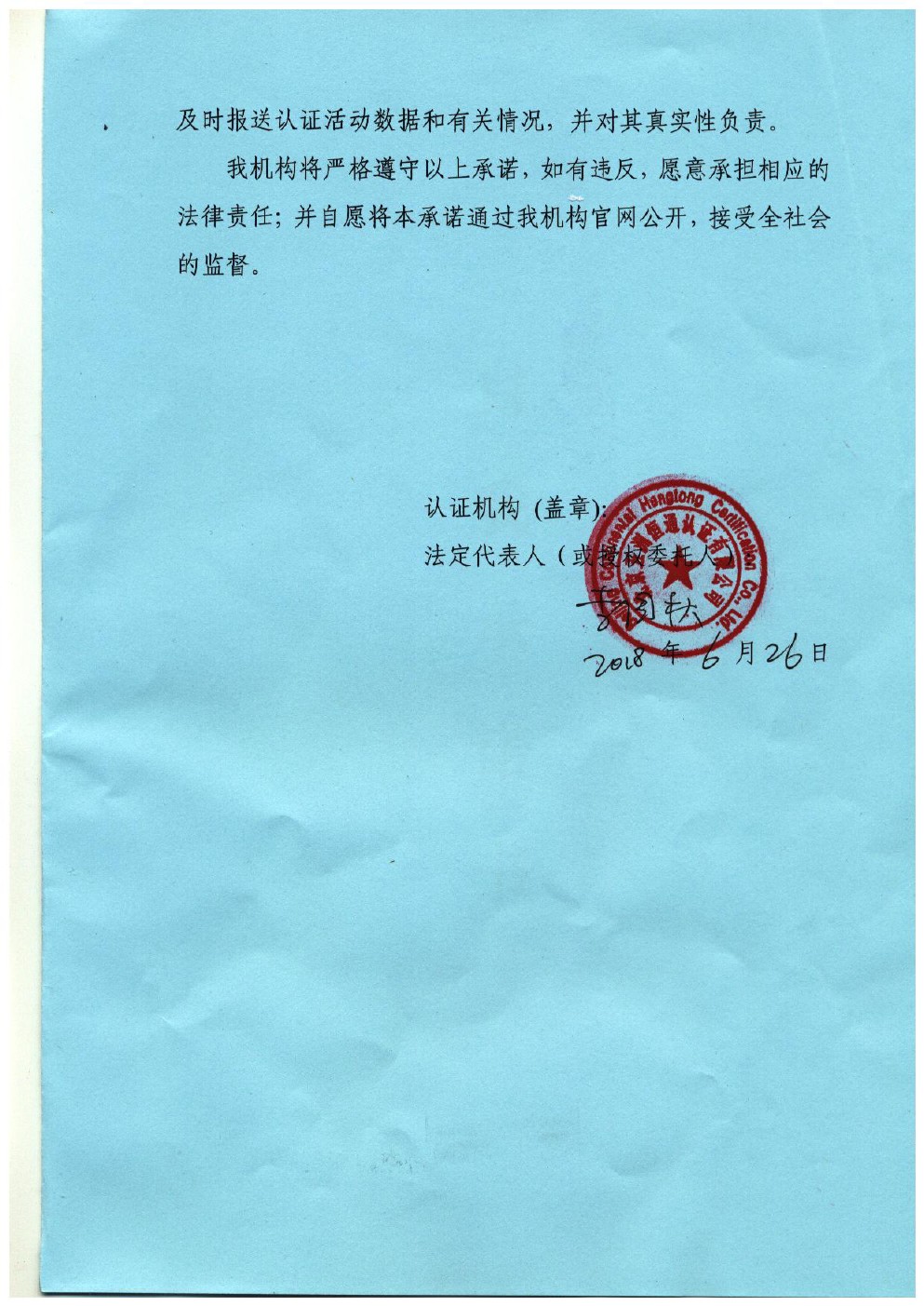 認證機構(gòu)自我承諾書